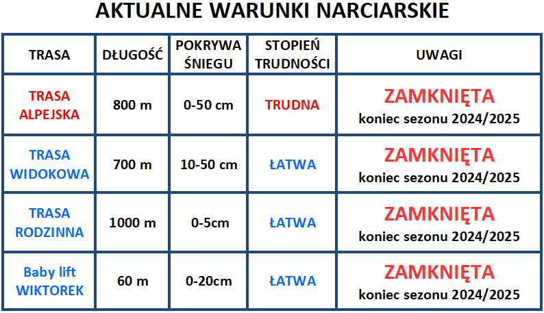Zapraszamy do zapoznania się z pełną ofertą naszej stacji narciarskiej w Sudetach. Oferujemy szerokie trasy zjazdowe dostosowane do potrzeb całych rodzin oraz wygodne wyciągi teleskopowe. Nasi Klienci mogą również skorzystać z usług profesjonalnej szkółki narciarskiej, w której instruktorzy nauczą Państwa poprawnej techniki zjazdowej na każdym poziomie zaawansowania. Zapraszamy również do odwiedzenia wypożyczalni i serwisu sprzętu narciarskiego. Fachowcy pomogą Państwu w doborze nart, kijków, kasków i innych akcesoriów przydatnych na stoku. W okolicach naszego ośrodka dostępnych jest wiele hoteli i willi, w których można zarezerwować komfortowe miejsce noclegowe.